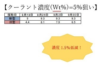 腐敗防止することによりPH低下やクーラント濃度の低下を防ぐことができました。すなわち、油費の低減に繋がります。
