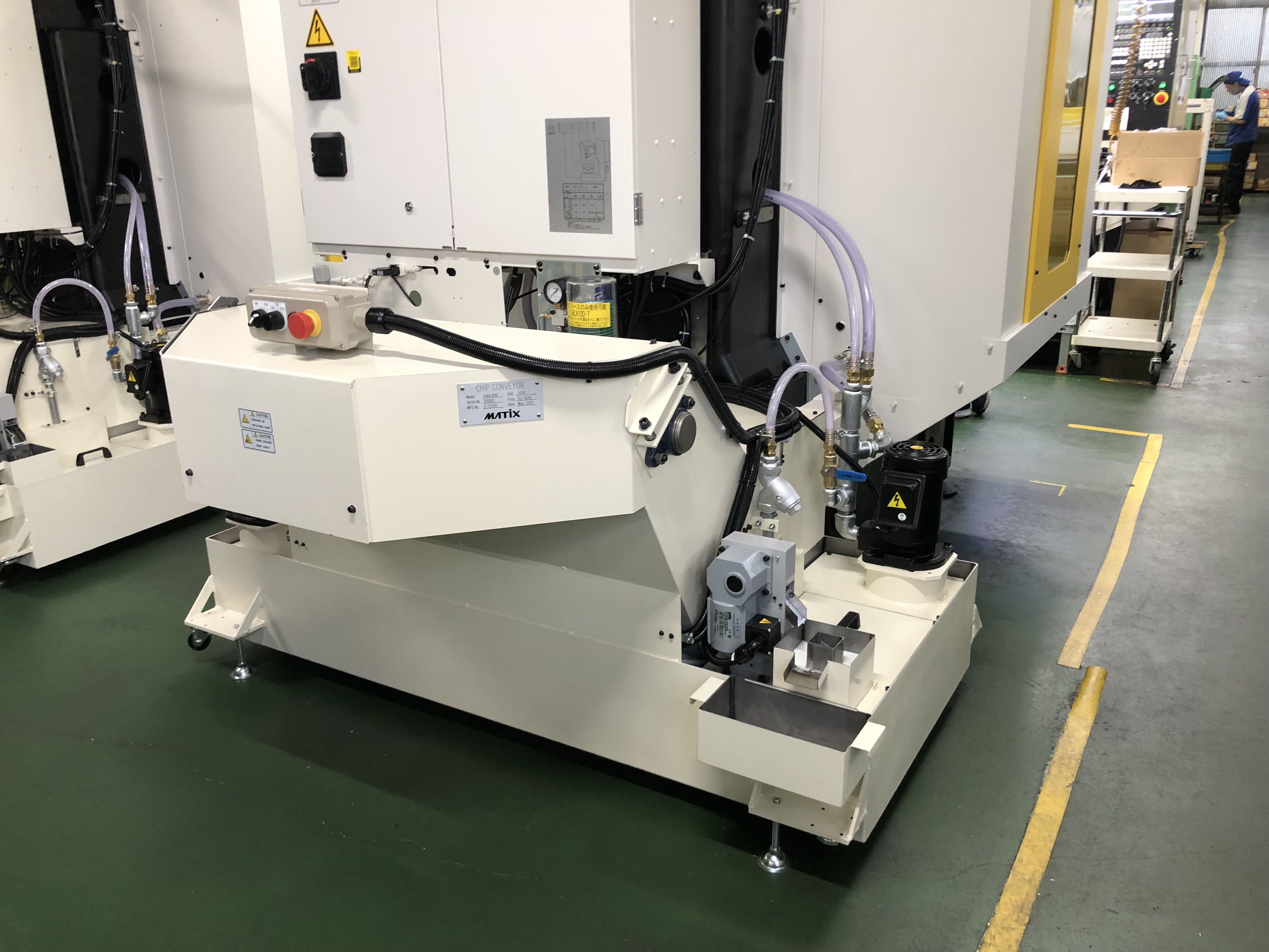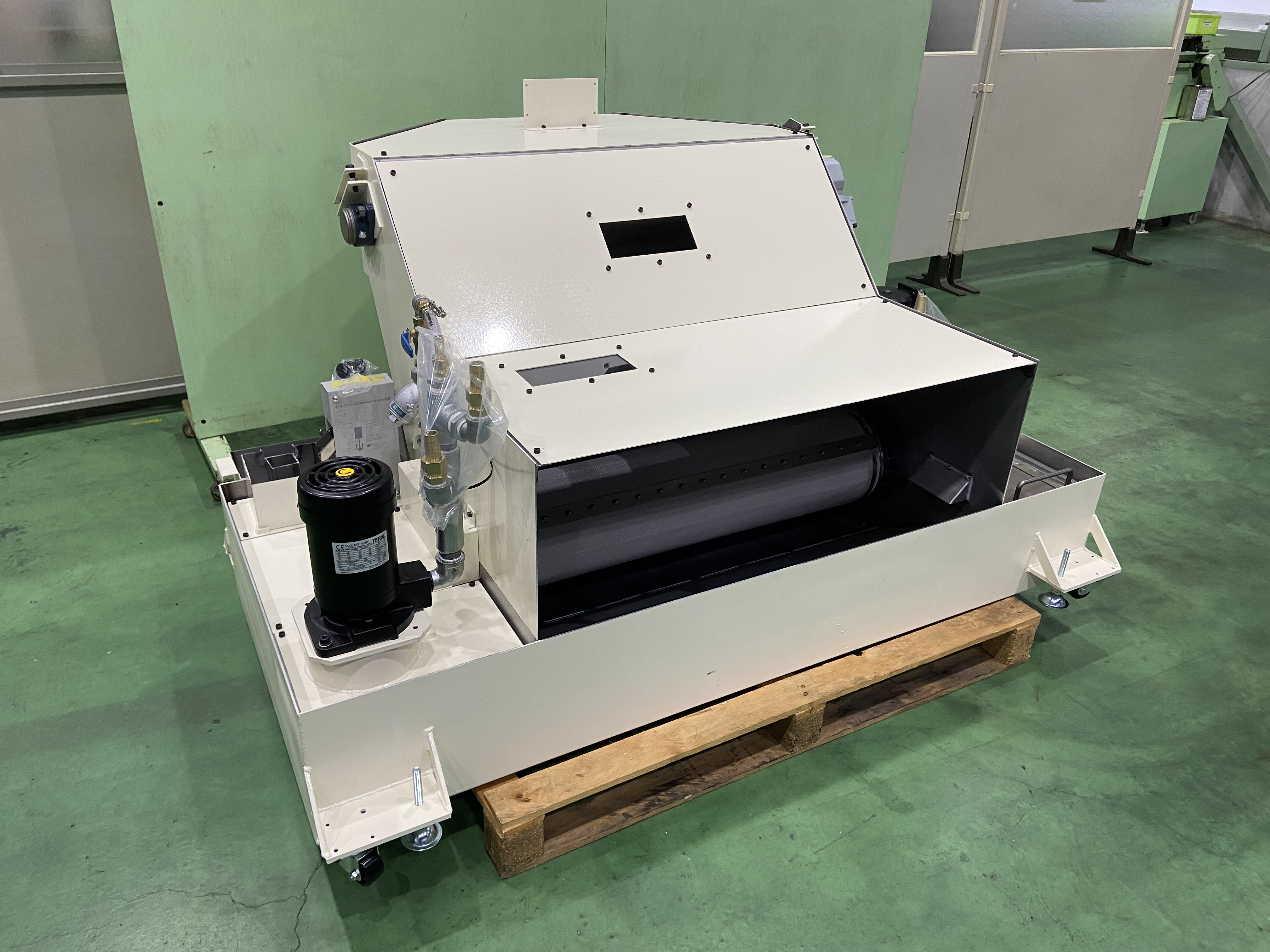 フィルターによる切削油ろ過と自動切粉掻き出しコンベアを搭載したクリーン、ダーティ2層型タンクです。