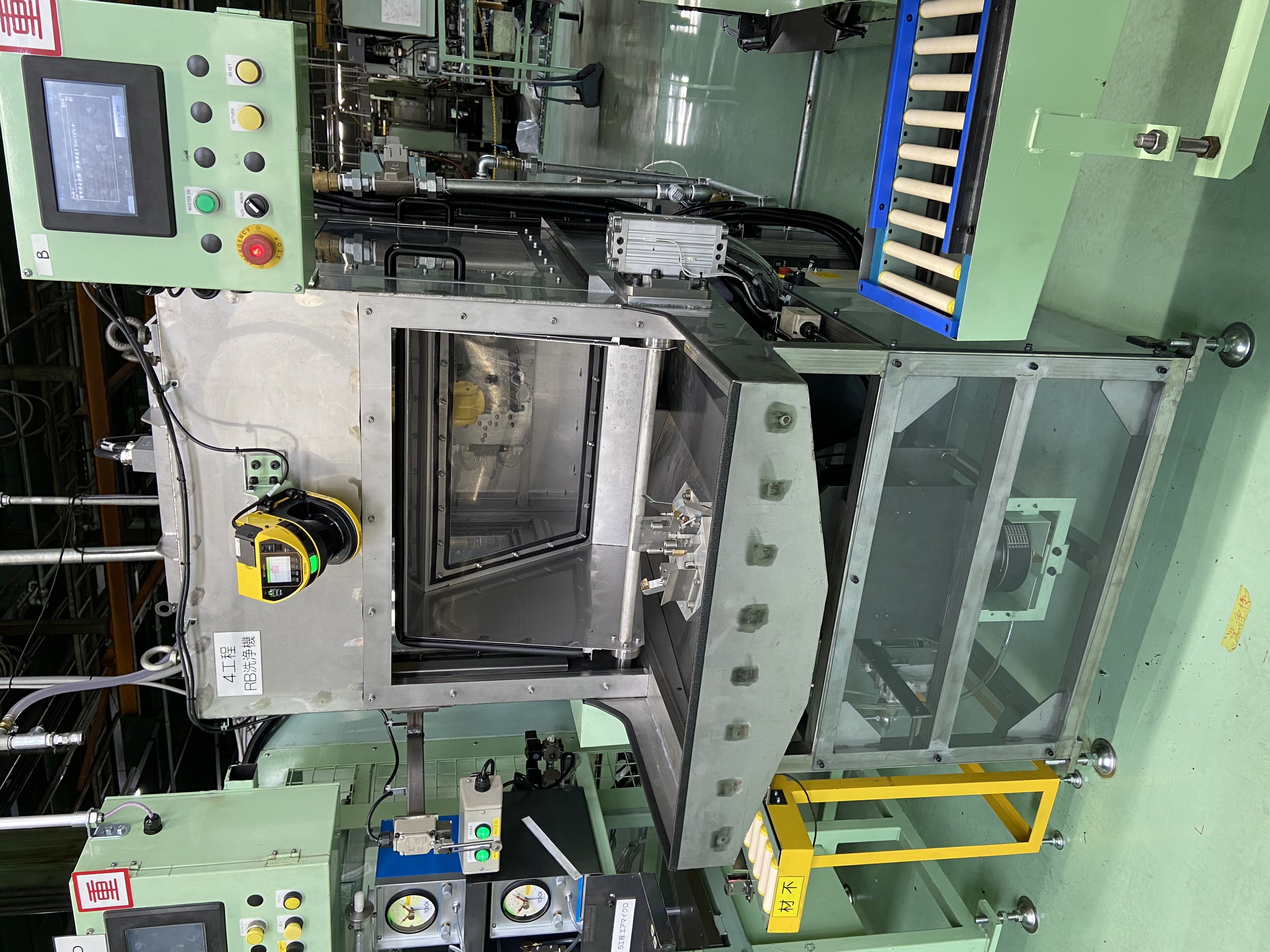 製造の作業性向上を目的に製造した、洗浄圧5Mpaのロボット洗浄機です。