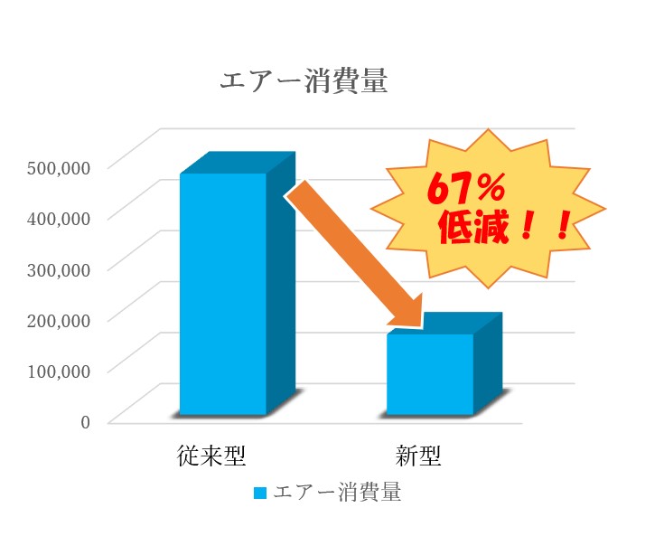 1.エアー消費67%低減に成功